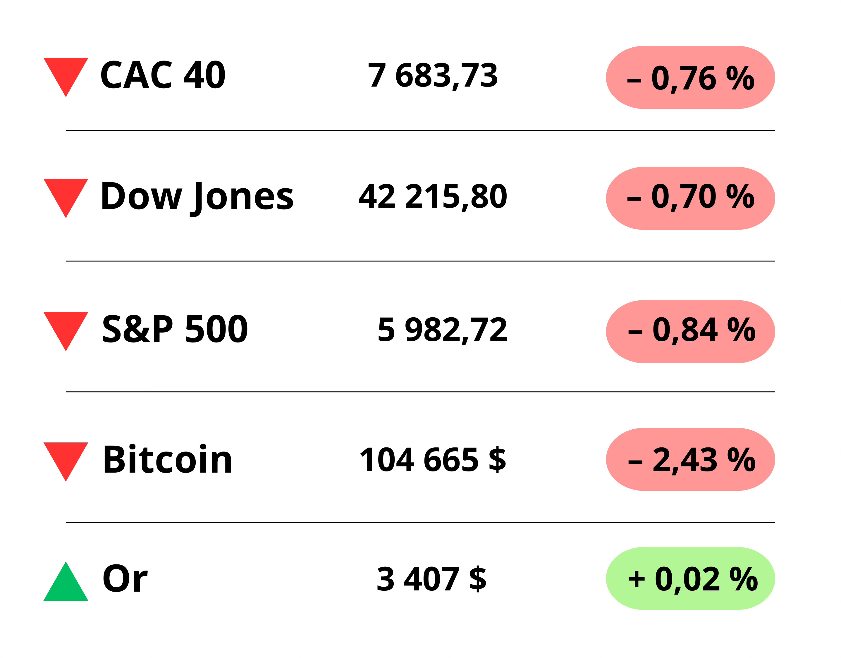 Wall Street đŠ Wall Street dĂ©rape alors que Trump hausse le ton contre lâIran. En exigeant une "reddition sans condition" et en menaçant Ă demi-mot son dirigeant, le prĂ©sident amĂ©ricain a ravivĂ© les craintes dâescalade militaire. RĂ©sultat : le Dow perd 300 points, le Nasdaq lĂąche prĂšs de 1 %, et le pĂ©trole grimpe de plus de 4 %. Ă cela sâajoutent des ventes au dĂ©tail en chute libre et des incertitudes sur les taux de la Fed.